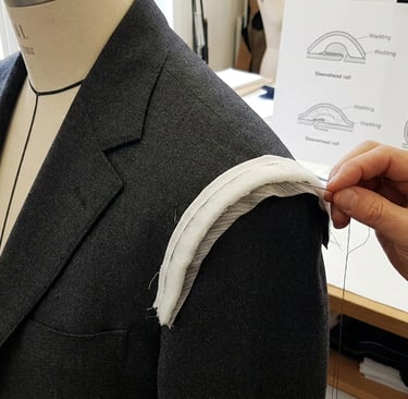 Sleeveheads are placed in the sleeve cap of a garment to provide support and prevent the seam allowance from showing through. Positioned between the sleeve and the shoulder, they help the top of the sleeve maintain a smooth and crisp shape. The size of the sleevehead is adjusted according to the jacket’s style to achieve the desired fit and appearance.